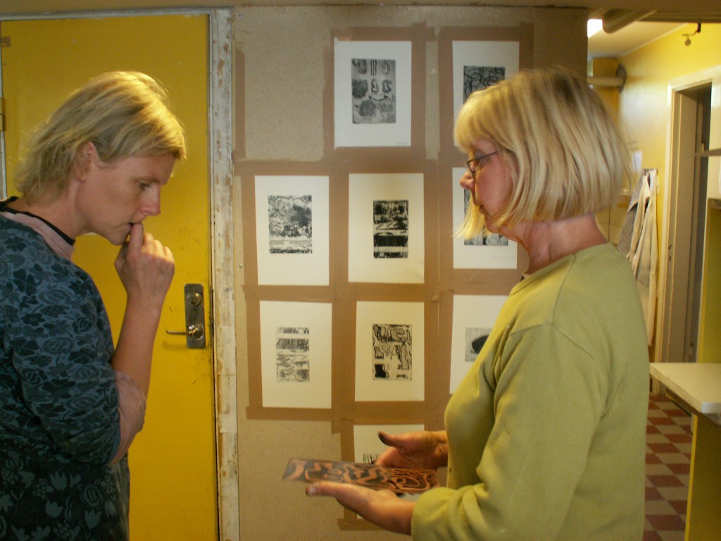 Bilder från grafikverkstaden, utställning med Anniki Andersson och rakubränning