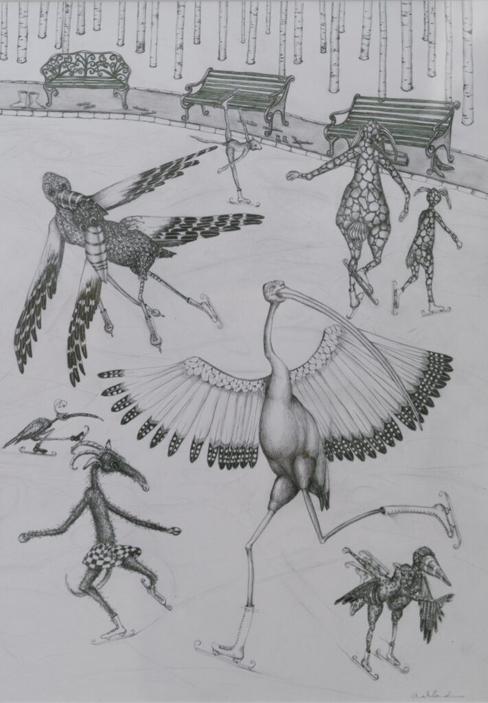 Ovan: Målning av Lars Nylund. Nedan: Yranaffisch av Kåre Henriksson, foto Lennart Jonasson och teckning av Anna Erlandsson, foto Henrik Ljusberg